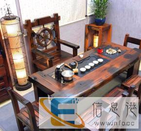 老船木家具厂老船木茶台茶道桌茶几古船木泡茶桌椅组合大理石功夫泡茶桌材料:老船木新旧:全新的规格:长180cmx宽80cmx高70cm 1桌子+1主椅+2靠背+2方凳六件套常规尺寸都有现货风格: 个性、自然、质朴,厚重、休闲经济适用系列之:简约茶字茶几,简单明朗,茶楼茶室,居家客室,实用经济本厂主要生产、船木家具、船木茶桌、船木沙发、船木办公桌、船木餐桌椅、船木博古架、船木马赛克、船木地板、船木茶盘等船木家具制品和工艺品。